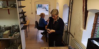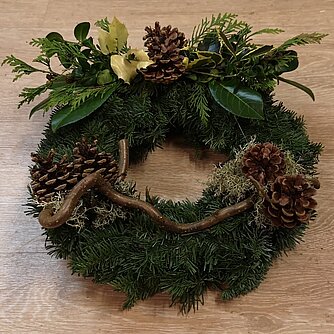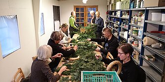 Et af klubbens større pengeskabende projekter er binding og pyntning af kranse til kirkegårdsgrave. Vi mødes 2 lørdage og 4 mandage i november måned og binder/pynter kransene. Forud er der blevet klippet gran og samlet pynt ind og gjort klar til arbejdet. Vi laver ca. 550 kranse hvoraf de ca. 300 sælges direkte til kirkegårdene og resten sælges til private. I 2023 havde vi et overskud på ca. kr. 33.500, som vi kunne bruge til at støtte forskellige projekter. Det er selvfølgelig det primære formål, men klubben har en sidegivnst, da arbejdet også styrker sammenholdet i klubben. Der er altid en hyggelig, drillende omgangstone og vi nyder hinandens selskab. Men uden mad og drikke..... - derfor skiftes vi også til at sørge for mad og ikke mindst kage.