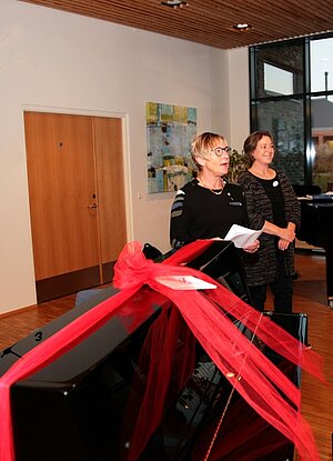 Med stor glæde kunne klubbens præsident, Rigmor Løwendahl, på Gudenåens Y´s Men´s Club´s vegne overrække klaveret til hospicechef Kirsten Ørom Larsen ved en reception afholdt af Gudenå Hospice.